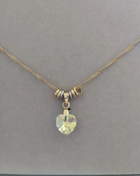 Dije de ❤️ con cadena y aritos de la suerte.. Se vende hermoso dije en forma de ❤️ con aritos de la suerte, el material es oro laminado.
