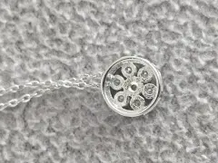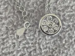 Dije de flor circular.Se puede retirar de la cadena.Material: Metal con pedrería.Tamaño cadena: 40 + 5 cmTamaño dije: Diámetro aprox. 0.7 cmSe entrega en bolsa de organza tipo costalito.Ideal para regalo 🎁Si te gusta otra pieza de mi colección avísame y te armo paquete 😉
