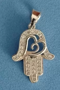 Dije Mano De Fátima Plata Taxco 925. Dije de 2cm de largo y 1.6cm de ancho, con circonias
