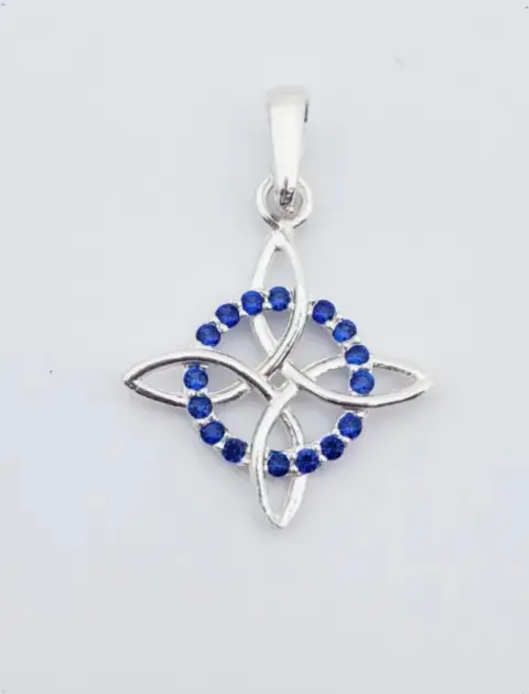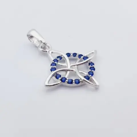 Hermoso dije de Nudo de Bruja Celta.Hecho en plata fina ley .925. Contiene 16 lindas circonias incrustadas del color azul rey..Material de autentica plata sólida, (no es baño de plata ni chapado).Fotografías reales; ten la seguridad que lo que ves es lo que recibirás (no son imágenes trucadas en 3D).Tu paquete incluirá: 1 dije Nudo de Bruja de plata, 1 cajita almacenadora, 1 franelita para limpiar joyería. Hecho por artesanos mexicanos.Muchas gracias por elegir y apoyar lo hecho en México.El Nudo de Bruja Celta es un símbolo que protege contra envidias y malas voluntades. Se dice que regresa la energía negativa a la persona que la envió. Es un excelwnte amuleto de protección.