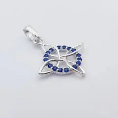 Dije Nudo de Bruja circonias azules, plata .925. Hermoso dije de Nudo de Bruja Celta.Hecho en plata fina ley .925. Contiene 16 lindas circonias incrustadas del color azul rey..Material de autentica plata sólida, (no es baño de plata ni chapado).Fotografías reales; ten la seguridad que lo que ves es lo que recibirás (no son imágenes trucadas en 3D).Tu paquete incluirá: 1 dije Nudo de Bruja de plata, 1 cajita almacenadora, 1 franelita para limpiar joyería. Hecho por artesanos mexicanos.Muchas gracias por elegir y apoyar lo hecho en México.El Nudo de Bruja Celta es un símbolo que protege contra envidias y malas voluntades. Se dice que regresa la energía negativa a la persona que la envió. Es un excelwnte amuleto de protección.