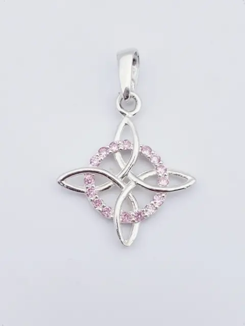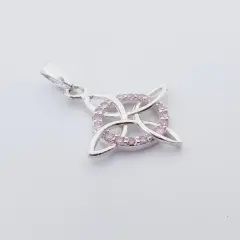 Dije Nudo de Bruja circonias rosas, plata .925. Hermoso dije de Nudo de Bruja Celta.Hecho en plata fina ley .925. Contiene 16 lindas circonias incrustadas del color rosa claro.Material de autentica plata sólida, (no es baño de plata ni chapado).Fotografías reales; ten la seguridad que lo que ves es lo que recibirás (no son imágenes trucadas en 3D).Tu paquete incluirá: 1 dije Nudo de Bruja de plata, 1 cajita almacenadora, 1 franelita para limpiar joyería. Hecho por artesanos mexicanos.Muchas gracias por elegir y apoyar lo hecho en México.El Nudo de Bruja Celta es un símbolo que protege contra envidias y malas voluntades. Se dice que regresa la energía negativa a la persona que la envió. Es un excelwnte amuleto de protección.