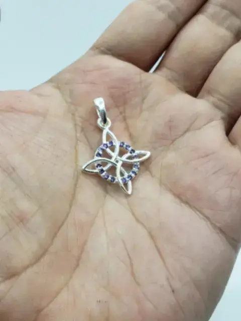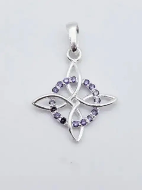 Dije Nudo de Bruja plata 925, circonias violetas