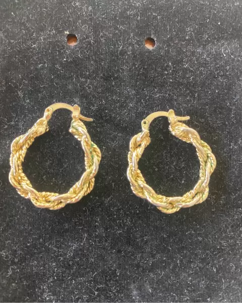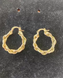 Increíble Duo divino, arracadas color oro en fina aleación de Oro plata y Acero, estilo torsal con broche y Preciosa cadena engarzada en fino detalle con seguro los dos a un precio increíble