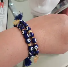 Duo de pulseras ojo turco. Duo de pulseras en ojo turco color azul marino, con dijes de borreguito y separadores en chapa de oro Precio duo 339Precio unidad 149