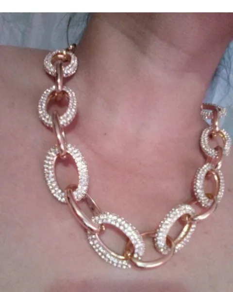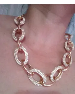 Hermosa gargantilla! Dorada, de eslabones, uno a uno, con aplicaciones tipo brillantes.Es una pieza muy elegante.
