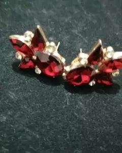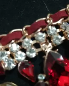 ‼️‼️Hermosa gargantilla de pedrería roja con blan o con su par de aretes, y en la gargantilla una cintilla roja, detalle que se le calleron 3 piedritas es notorio si se fija a detalle