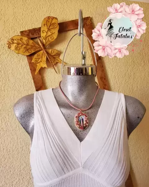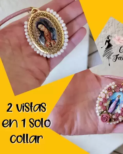 Gargantilla diseño Artesanal con tamaño ajustable, imagen Virgen Milagrosa y Virgen de GuadalupeColor de collar rosa palo con detalles doradosMateriales:Medalla con incrustaciones de fantasía, perlitas, diamantes y un toque delicado de flores de pasta francesa.Collar de cuero sinteticoCadena y Gancho plastificados en dorado.Empaque: se envia en una bolsita de organza, lista para el empacado personalizado que le gustes dar.