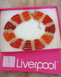 Gargantilla liverpool dorada con rojo, naranja. Hermosa gargantilla color naranja rojo y dorado cadenita posterior para ajustar y en Los detalles se aprecian en la foto, super combinable y elegante