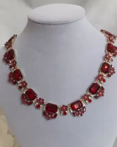 Gargantilla roja. Hermosa gargantilla cadena dorada y pedrería en color rojo y blanco, y delicadas perlas miniaturas. Luce divino.