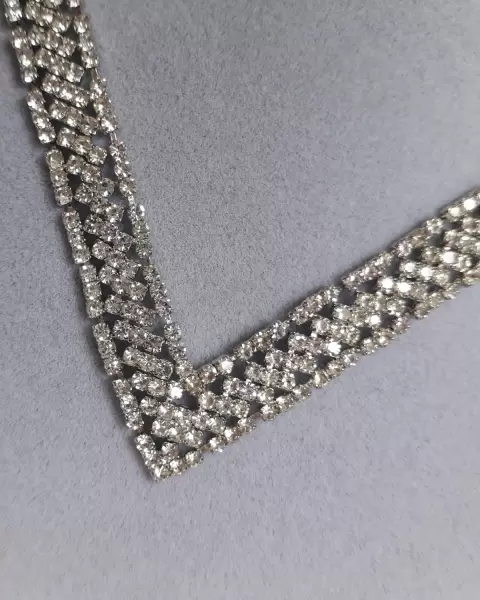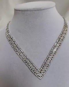 Gargantilla V pedrería. Hermosa gargantilla en V con pedrería. Luce divina muy elegante, realza tu vestido de noche. Es totalmente nueva, pero sin etiqueta, por lo que no tengo la marca. Es de la tienda Macy's