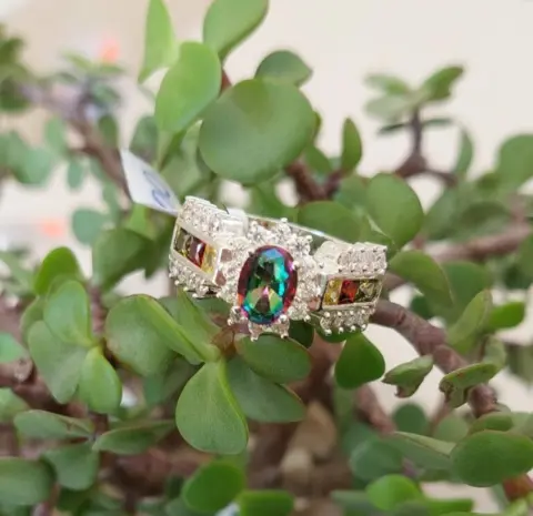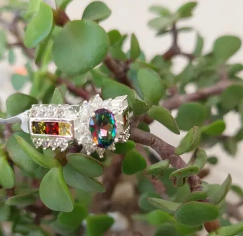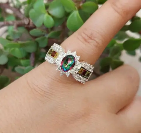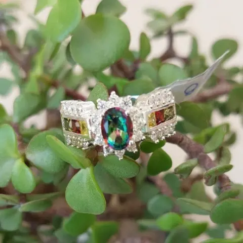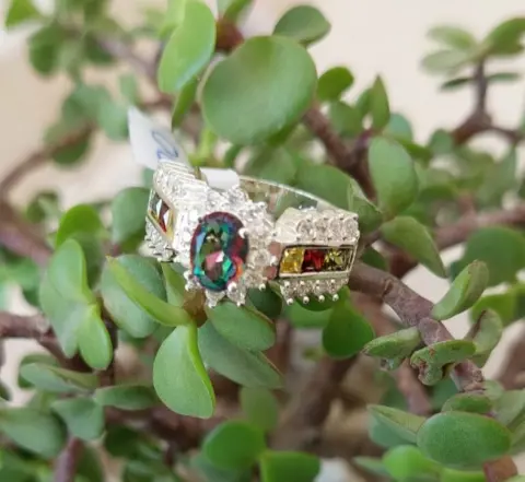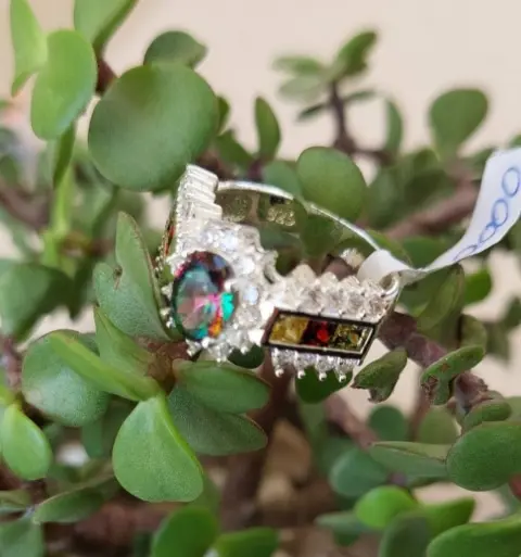 Hermoso anillo de plata. Bonito anillo fabricado en plata 925, topaz místico, y circonias.Talla 8ÚNICO PRECIO YA PUBLICADO
