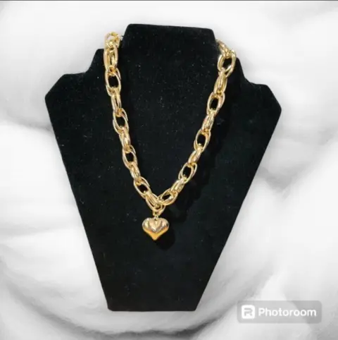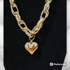Hermoso Collar Con Baño de Oro de Fantasia, Con Dije de Corazon, color chapa Dorada, cadena trensada, cherry de broche, Heche Con metal bańado de acero inoxidable, made 21cm Con El dije, Nuevo a estrenar Con etiqueta en buen estado cosmetico.