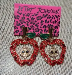 Hermosos aretes Betsey Johnson. Hermosos aretes en forma de manzana... la verdad se ven hermosos, super brillantes y novedosos.Medida: 3cm de ancho x 4.5 de altoÚLTIMO PRECIO YA PUBLICADO