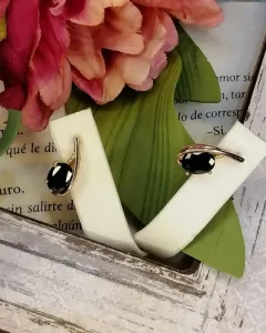 Hermosos Aretes oval. Hermosos Aretes tipo oval con sintético en tono zafiro en Oro laminado