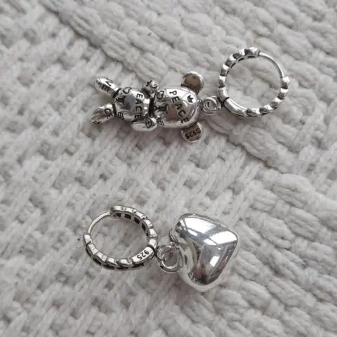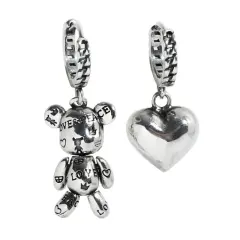 Huggies asimétricos de oso y corazón. Hermosos Huggies asimetricos de osito y corazón hermosos super originales de excelente calidad Bonitos y elegantes huggies de plata S925 importada Con quitado S925 El oso se gira y se mueve en diferentes direcciones