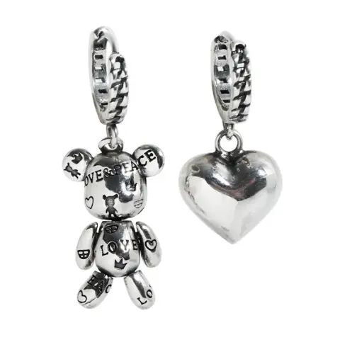 Hermosos Huggies asimetricos de osito y corazón hermosos super originales de excelente calidad Bonitos y elegantes huggies de plata S925 importada Con quitado S925 El oso se gira y se mueve en diferentes direcciones