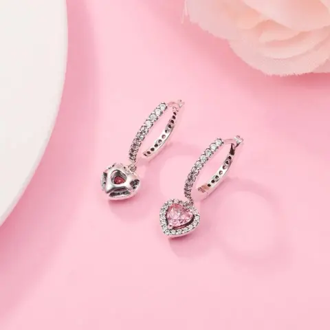 Huggies de corazones rosas alrededor del corazón también tienen circonias en plata s925 son super hermosos y de excelente calidad con quintado son hermosos estilo Pandora harán lucir tu look único brillan hermoso ⚠️ Si está publicado está disponible, se envía en empaques reciclados, Solo pregunta o realiza una oferta si estás realmente interesad@, acepto solo ofertas razonables⚠️
