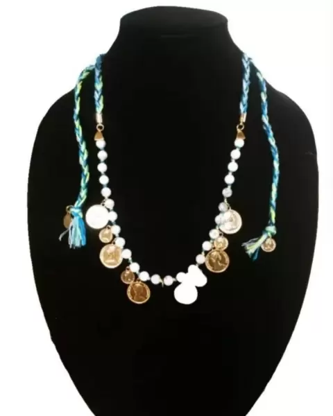 I.N.C International Concepts Collar trenzado azul M. Haskell para mujer, estilo moneda, acento dorado, tendencia de tela azul-verde brillante y mezcla de agua con cuentas y monedas, cierre de broche, mide 12.5" de largo, $3680.00 al por menor, nuevo con etiqueta como mercancía de liquidación en buen estado 🛒Bundle $Ahorre en costos de envío.