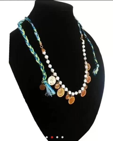 I.N.C M. Haskell Collar trenzado azul. I.N.C International Concepts Collar trenzado azul M. Haskell para mujer, estilo moneda, acento dorado, tendencia de tela azul-verde brillante y mezcla de agua con cuentas y monedas, cierre de broche, mide 12.5" de largo, $3680.00 al por menor, nuevo con etiqueta como mercancía de liquidación en buen estado 🛒Bundle $Ahorre en costos de envío.