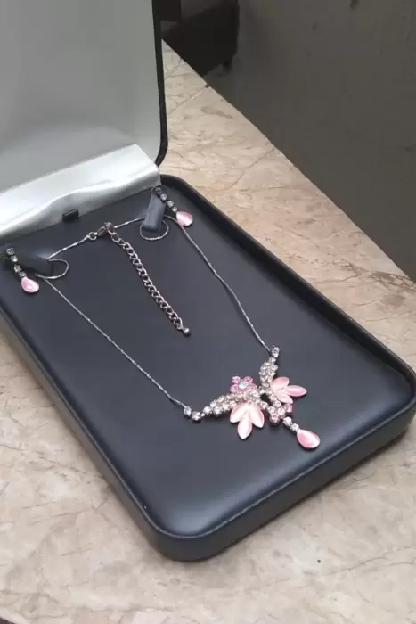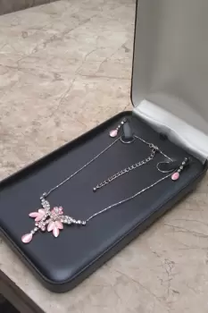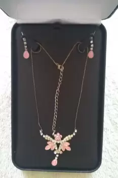 Elegante Juego de gargantilla collar y aretes pedrería fina en rosa y plata, para fiesta o cocktail, es nuevo, lo vendo por no usarlo. Entrego en su estuche original. Precio regular en tienda es de $ 500.00, la vendo en $ 250.00