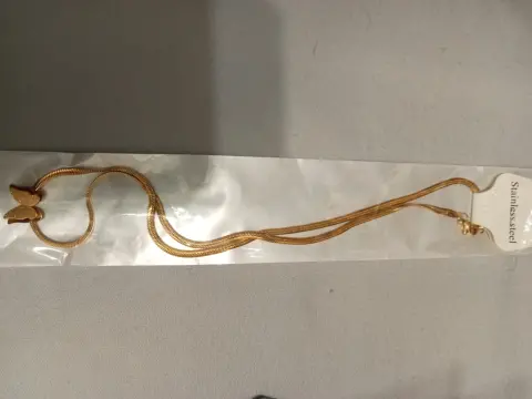Joyería de acero inoxidable. Pulsera y collar con dije de mariposa, acero inoxidable dorado, nuevo