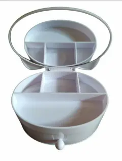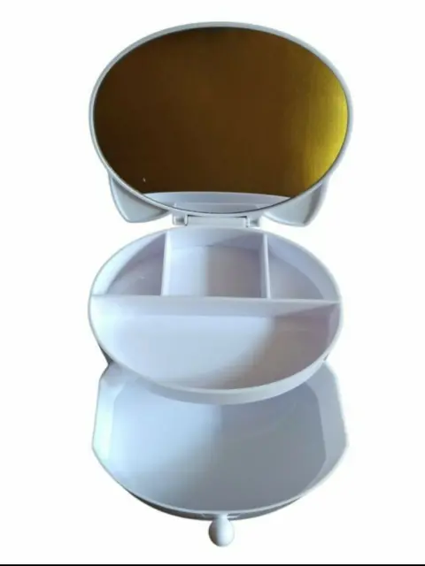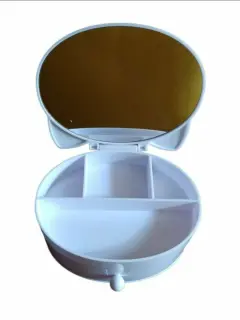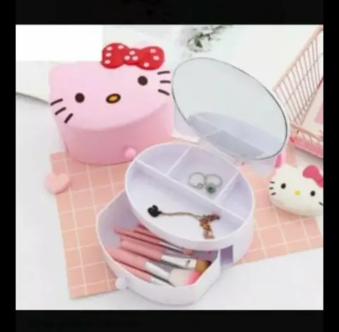 Hermoso alhajero con diferentes compartimientos y un cajón, puedes guardar anillos, aretes y collares. Diseño de Hello Kitty. Nu3v0.MEDIDAS DEL PRODUCTO:Alto 8 cm.Ancho 16 cm.Cajón: ancho 14 cm, alto 11 cm.Espejo: alto 11 cm, ancho 15 cm.