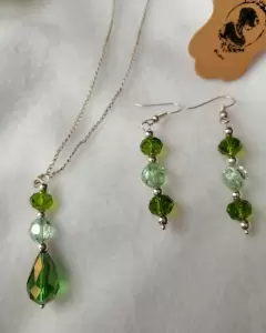 Juego collar y aretes cristal verde limón. Juego de collar y aretes con dijes en color verde limón, ideal para resaltar tu look, marca coqueta, nuevo para que lo estrenes