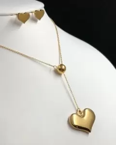 💓 Hermoso collar con cadena en fino acabado y dije colgante de corazón con aretes, en acero premium hipoalergénico. no se mancha, no se despinta, no se dobla.Ideal para chicas con estilo como tu! 💞