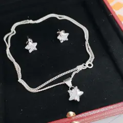 Juego de aretes de estrella y collar de plata con dije de estrella, cadena de 50 cm y aretes y dije en cristal cortado todo completamente de plata. 925 italiana