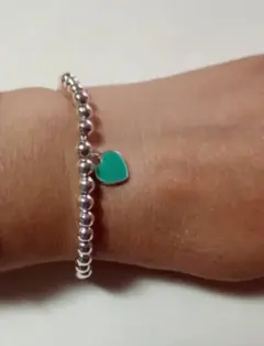Juego de collar y pulsera. Pulsera y collar de plata esterlina ley 925 pulsera de cuentas redondas y corazón esmaltado mide 20 cms y collar de cadena delgada con dije de corazón doble