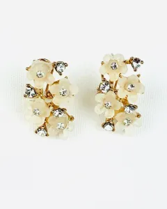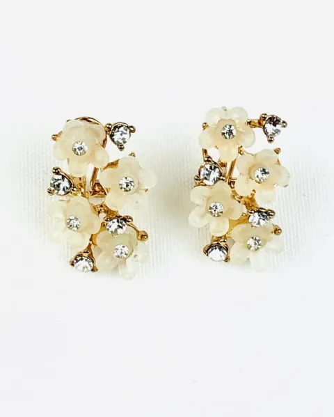 Juego de bisutería que incluye aretes, pulsera y gargantilla con lindísimos detalles de flores con delicados botones en brillante de imitación.