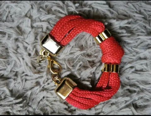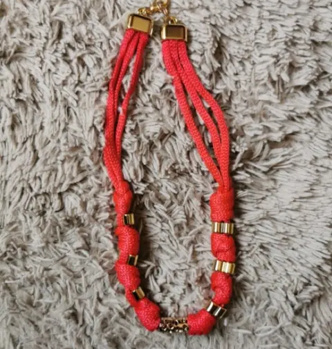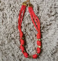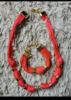 Hermoso juego de fantasía, de color rojo con dorado, pulsera y collar con bellos detalles