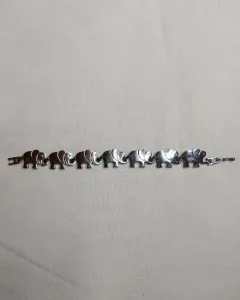 Linda pulsera de elefantes. Linda pulsera de elefantes color plateada, los elefantes se ven muy lindos. No se de que material sea! Tiene algunos rayones. No está despintada. Mide aproximadamente 18cm.
