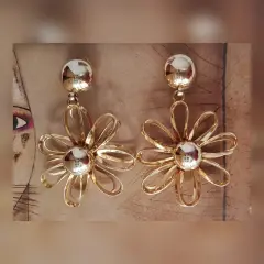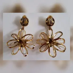 Maxi Aretes Vintage Flores. Maxi Aretes VINTAGE en forma de flor tono DORADO, cierre p/clip y son muy ligeros. Dimensiones cms: 9 largo, 6 circunferencia. Aleacion zinc.***ESTÁN EN BUEN ESTADO, LOS USE MUY POCO Y SOLO ESTUVIERON GUARDADOS. EN LA ZONA DEL CLIP EL TONO EMPIEZA A CEDER, PERO ES MUY POCO.***SE ENTREGAN LIMPIOS, PULIDOS Y DESINFECTADOS.***
