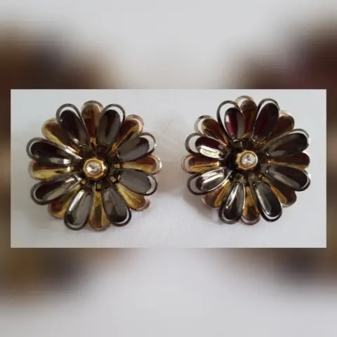 Maxi Aretes VINTAGE en forma de margaritas bitono DORADO/PLOMO, c/aplique circonía, cierre p/clip y son ligeros. Dimensiones cms: 6 circunferencia. Aleacion zinc.***ESTÁN EN MUY BUEN ESTADO, NUNCA LOS USE Y SOLO ESTUVIERON GUARDADOS.***SE ENTREGAN LIMPIOS, PULIDOS Y DESINFECTADOS.***