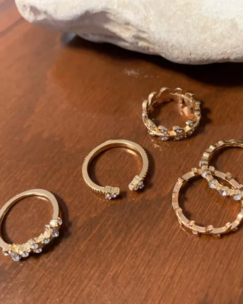 Pack de anillos. Pack de 5 anillos, aleación con cristales, nuevos