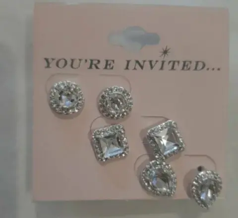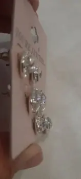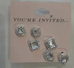 Pack de aretes para fiesta. Tres juegos de aretes de bisutería para evento, cristales blancos con metal plateado. Nuevos. Discretos.