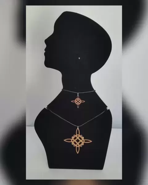 PAQUETE de dos collares con dijes del mítico talismán Nudo de la Bruja en madera (no es MDF) laqueada tono COBRE y cordón encerado autoregulable. MEDIDAS CMS: 4 x 4 nudo chico, 8.5 x 8.5 nudo grande, desde 41.5 hasta 77 cordón.***PRECIO NO NEGOCIABLE*** Por favor, no regatees, estos productos son elaborados por personas que perdieron su empleo y su venta les ayuda a llevar el sustento a su familia. ¡Ayúdame a ayudarlos!***Puedes comprarlos así o solicitar algún dije de otro color o cualquiera de los otros paquetes con el mismo precio, ya sea el mismo color o distinto***
