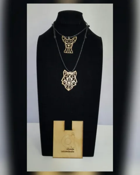 PAQUETE de dos collares con dijes de cánidos (perro chihuahua y lobo) en madera (no es MDF) laqueada tono DORADO y cordón encerado autoregulable. MEDIDAS CMS: 5.5 x 5 chihuahua, 6.5 x 5 lobo, desde 41.5 hasta 77 cordón.***PRECIO NO NEGOCIABLE*** Por favor, no regatees, estos productos son elaborados por personas que perdieron su empleo y su venta les ayuda a llevar el sustento a su familia. ¡Ayúdame a ayudarlos!***Puedes comprarlos así o solicitar algún dije de cualquiera de los otros paquetes con el mismo precio, ya sea el mismo color o distinto***