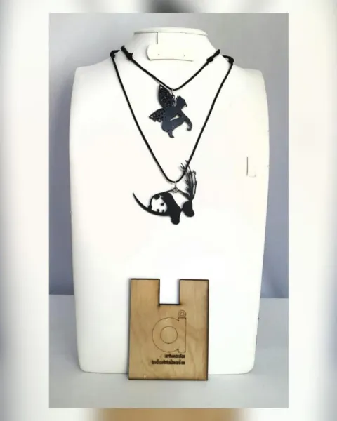 PAQUETE de dos collares con dijes de hada y oso panda durmiendo en bambú en madera (no es MDF) laqueada tono NEGRO ÉBANO y cordón encerado autoregulable. MEDIDAS CMS: 6.7 x 5 hada , 6.5 x 7.5 oso panda, desde 41.5 hasta 77 cordón.***PRECIO NO NEGOCIABLE*** Por favor, no regatees, estos productos son elaborados por personas que perdieron su empleo y su venta les ayuda a llevar el sustento a su familia. ¡Ayúdame a ayudarlos!***Puedes comprarlos así o solicitar algún dije de cualquiera de los otros paquetes con el mismo precio, ya sea el mismo color o distinto***