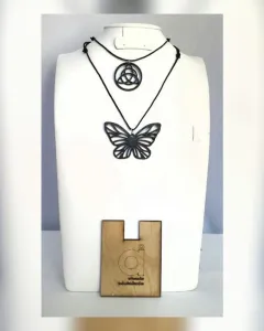 PAQUETE Dos Collares Sagrados NEGRO. PAQUETE de dos collares con dijes de nudo celta (nudo de la trinidad) y Mariposa en madera (no es MDF) laqueada tono NEGRO ÉBANO y cordón encerado autoregulable. MEDIDAS CMS: 4.5 x 4.5 nudo celta, 5.5 x 8.5 mariposa, desde 41.5 hasta 77 cordón.***PRECIO NO NEGOCIABLE*** Por favor, no regatees, estos productos son elaborados por personas que perdieron su empleo y su venta les ayuda a llevar el sustento a su familia. ¡Ayúdame a ayudarlos!***Puedes comprarlos así o solicitar algún dije de cualquiera de los otros paquetes con el mismo precio, ya sea el mismo color o distinto***De los nudos celtas, el nudo triquetera o el nudo de la Trinidad es el más famoso. Se puede ver en la típica joyería Celta. En las obras religiosas, se utiliza para simbolizar la Santísima Trinidad.