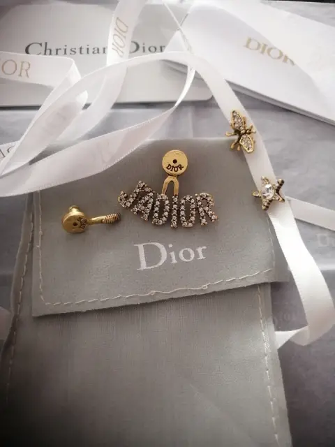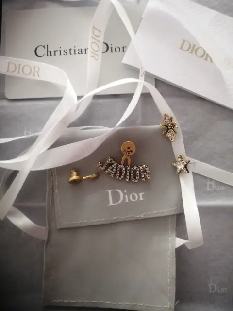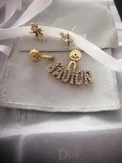 Hermosos pendientes CD con un arete y el otro con las letras con swarovskys, son de metal nvos sin detalles viene con lo que vez y cajita bolsa dust bag