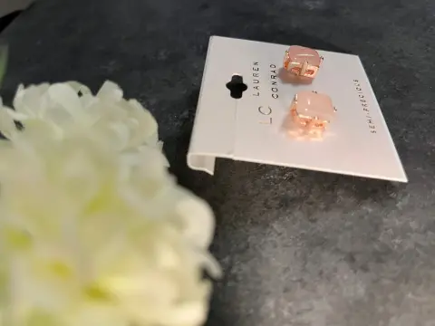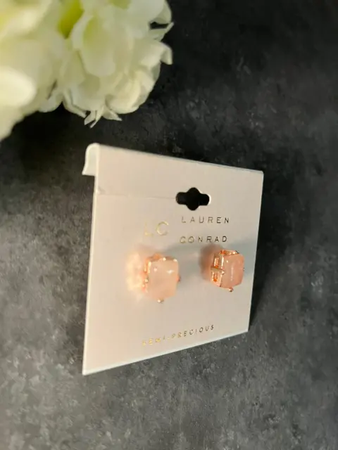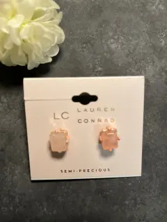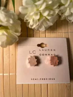 Pendientes (aretes) De la prestigiosa marca Lauren Conrad, rosa baby de su líneasemi-precius. Hecha a mano y con gemas genuinas.