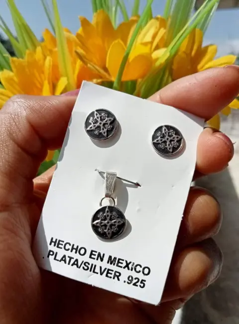 Plata ley 9.25. Bonito juego de aretes y dije, planta ley 9.25 sin cadena.