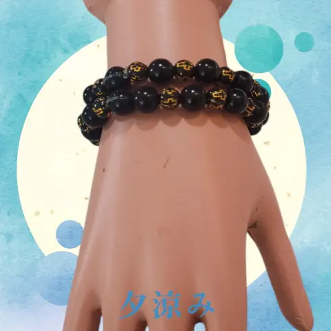 Pulcera de Cuentas con Dije. Juego de 2-piezas de Pulceras de Hilo en color negro con dorado tamaño mediano y grande para compartir, vienen con bolsita para guardar, nuevas a estrenar.