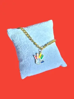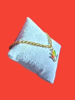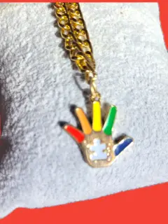 Pulcera Despertar Conciencia Autismo de Cadena trensada en color dorado con dije en forma de mano multicolor, cierre de broche, mide 6cm de diametro, una pieza perfecta para que la use tu hijo(a), nueva a estrenar con bolsita de tela para guardar.