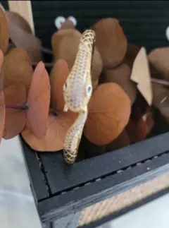Pulcera en forma de cobra con ojos verde. Pulcera en forma de cobra con ojos en piedreria Verdes y pequeñas piedras blancas de acento aproximadamente 2.5cm de diametro con cierre de Iman y una pequeña chapa de oro en todo el cuerpo luce espectacular con cualquier outfit y llevate las Miranda's de todos ad quiere la tuya antes de que se terminen
