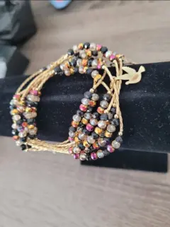 Pulcera Estilo Semanario Beads Multicolo. Multi-color semanario pulcera con dijes en multicolores y dorado con acentos de beads y multi dijes con cadena planchada de laminado en fantasia color dorado, tiene 5cm de circumferencia nueva a estrenar lucela con tus looks casuales o formal.
