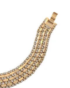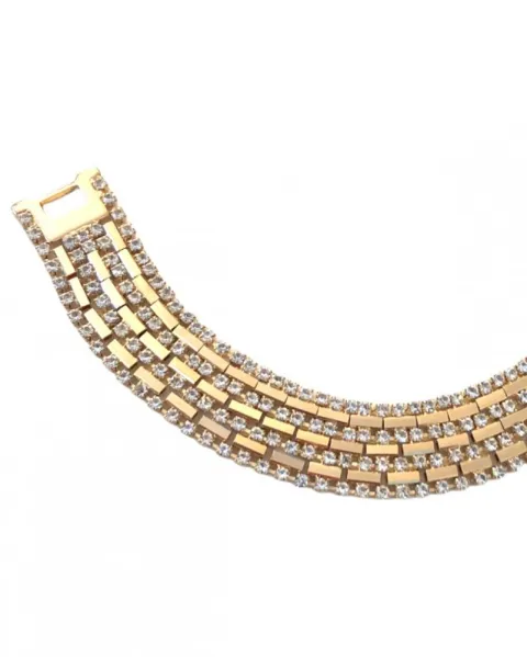 Bonita pulsera en acero inoxidable color dorado con cristales brillantes incrustados a lo largo de la pulsera, cuenta con broche de seguridad.